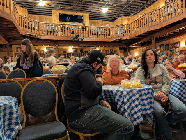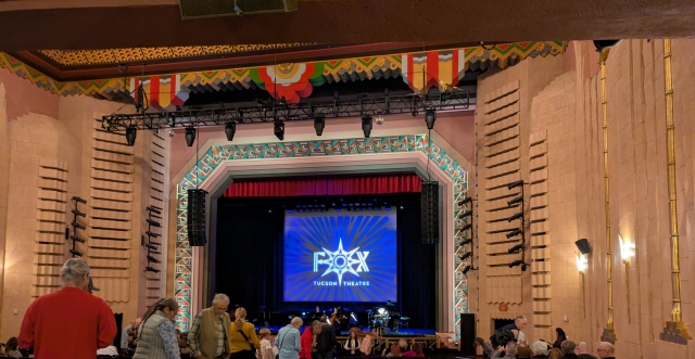 Dani and Gayle joined us for a few days. We packed the days full of excitement. Here’s less than half of all we did. We started with the Fox Theater, where the Tucson Symphony played music to go with Charlie Chapman movies. The man was a genius. His movies are funny and kind. The theater was recently restored. Locals call the decor “Western Art Deco”. We did a food tour — 7 stops in 4 hours. All the food we had was very good. Some was extraordinary. “Old Tucson” is a tourist destination and it is also a working movie set. Think of “Little House on the Prairie” and countless cowboy movies. Only the tour was running. The actors were still practicing their shows. Watching the practice was a bonus. One doesn’t have to explicitly stop to see amazing scenery, but we did. Saguaro Park is incredible. As a topper, we experienced an unusual day of dramatic clouds. My favorite was the Gaslight Theater. Admission includes a large bag of popcorn. You don’t have to order food, but if you do, it will be perfectly good. From singing along to booing the bad guy, audience participation is encourage. The Gaslight is very popular with the locals.