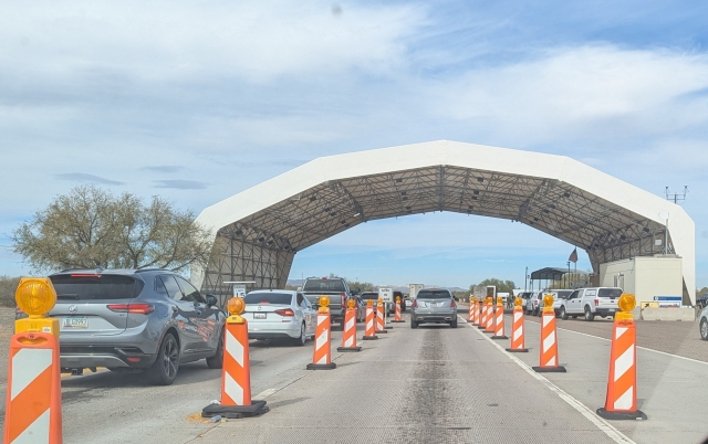 Tumacacori has several interesting elements. It’s about 40 miles south of Tucson, not far from Nogales, Mexico. We knew we weren’t far from the border, but we were still surprised when we encountered a border patrol check point in the north-bound direction. An ICE officer stood in the middle of the two-lane interstate, looking at the faces of the people in the cars, and either waving traffic through or stopping it to check credentials.