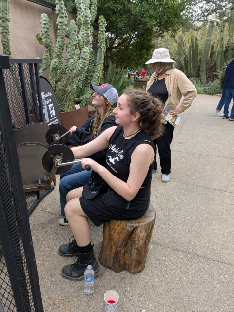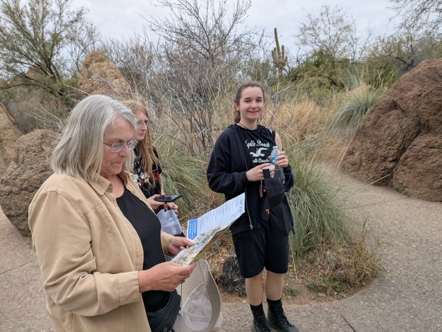 We visited the Western park earlier. We saw the stark, dramatic landscapes that we associate with the Sonoran desert. The Eastern park is different because it gets more rain, making it a riparian area. (This is just one of many words Arizonans use to describe water.) Here we saw the famous Saguaro cactus, but we saw much more diversity, both of animals and plants. And I saw more shades of green than I could count. If you ever come to Tucson, make sure to visit both parks and Sabino Canyon.