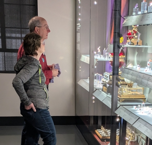 Ed and Lynne joined us Wednesday. They’ll be with us for a week. So far, the major attractions we visited include the Alfie Norville Gem Museum, the Pima Aircraft Museum, Old Tucson, and the Titan II Missile Museum. The weather continues to please — sunny with daytime highs near 80, dropping to the 50s at night. Here’s a pic of Ed and Lynne appreciating some gems at the Norville.